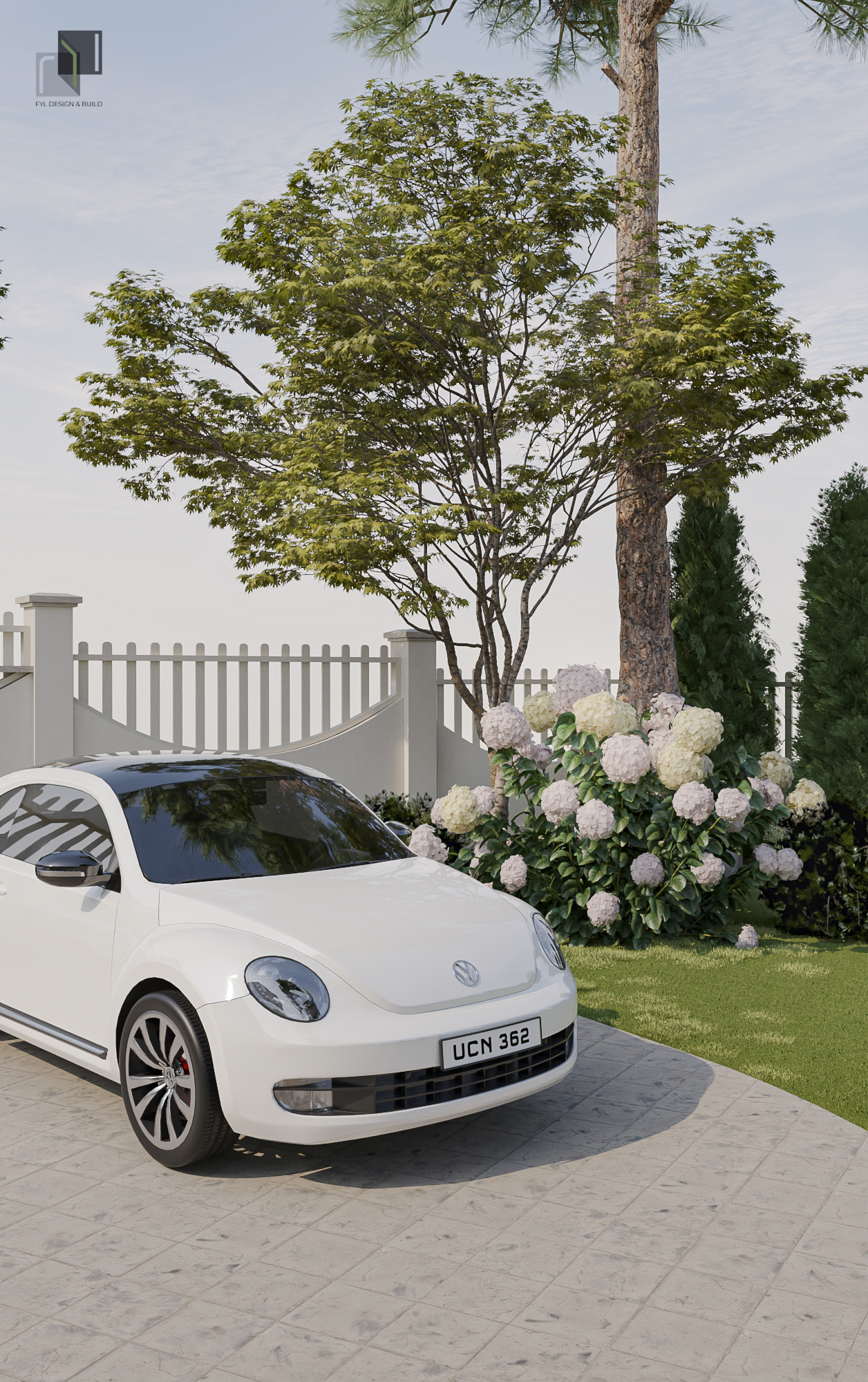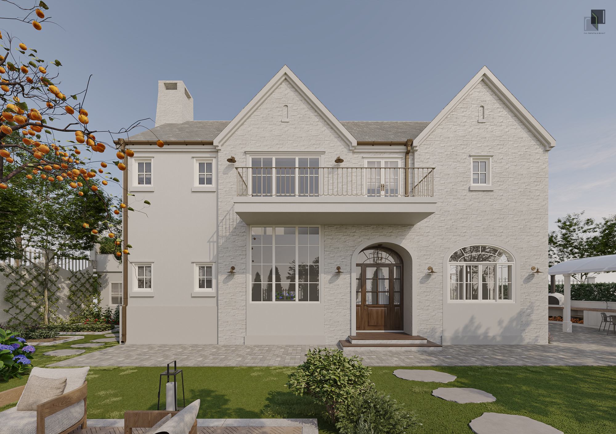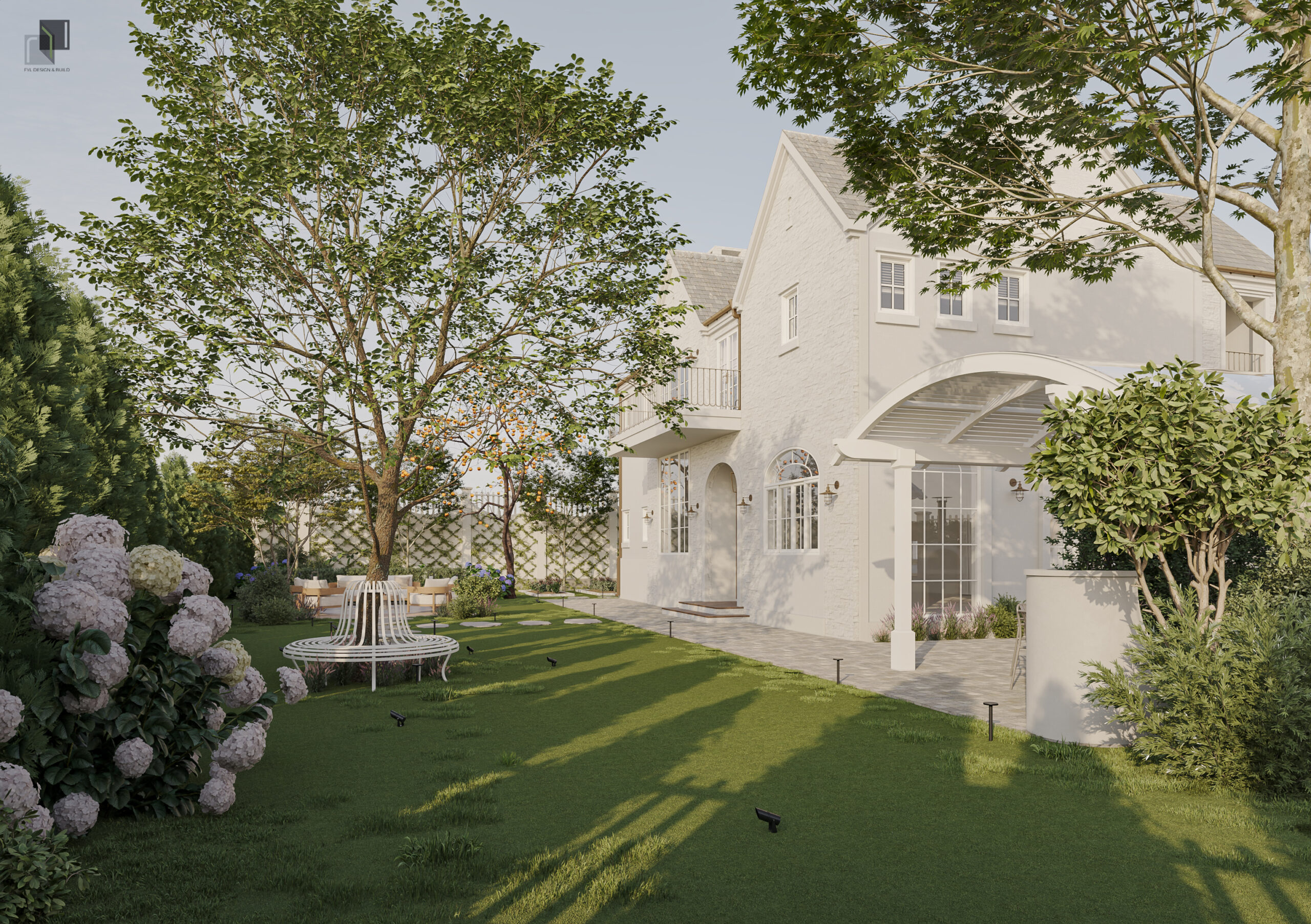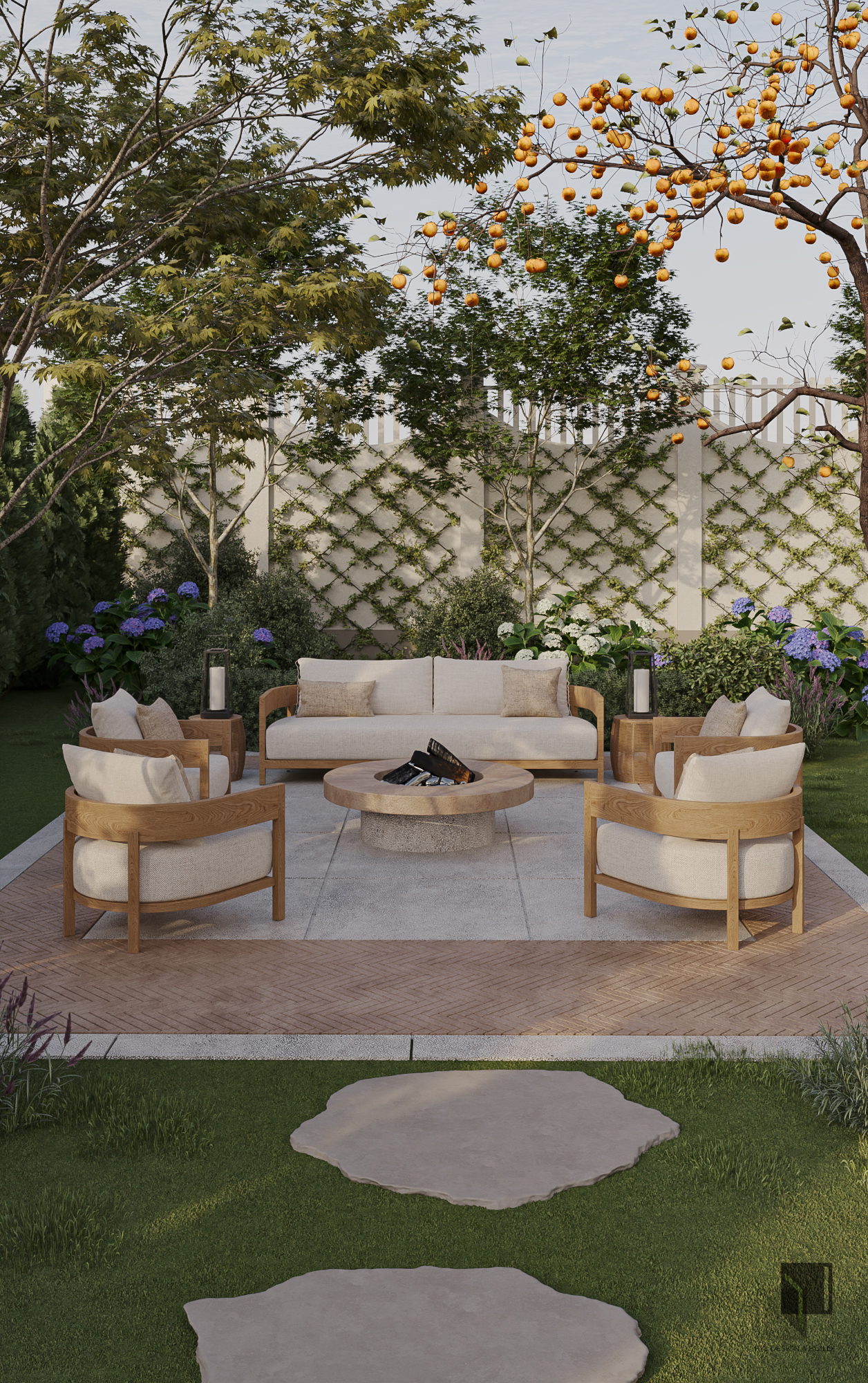 The backyard, where persimmon trees and a fresh vegetable garden create a simple yet vibrant scene. This is where the owners can plant, nurture, and enjoy the harvest, living a daily life that brings the peaceful breath of the countryside.