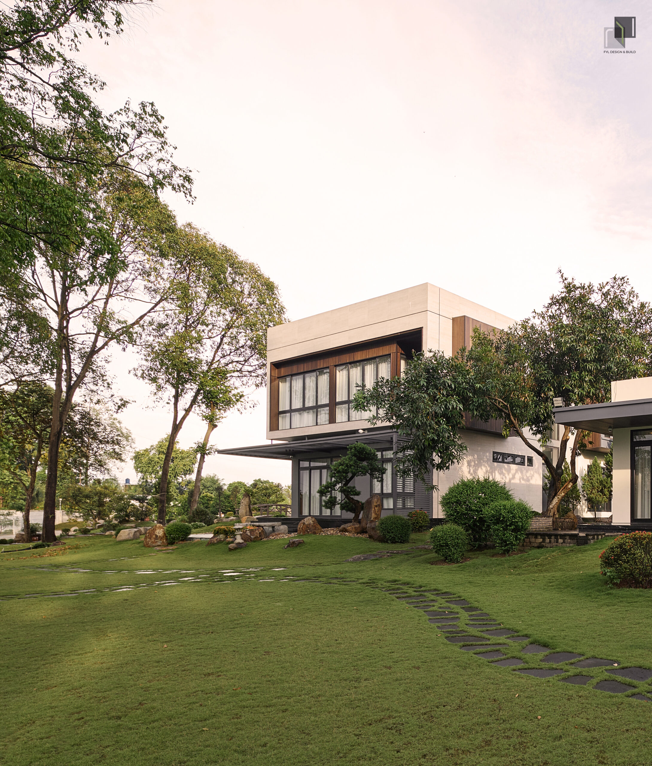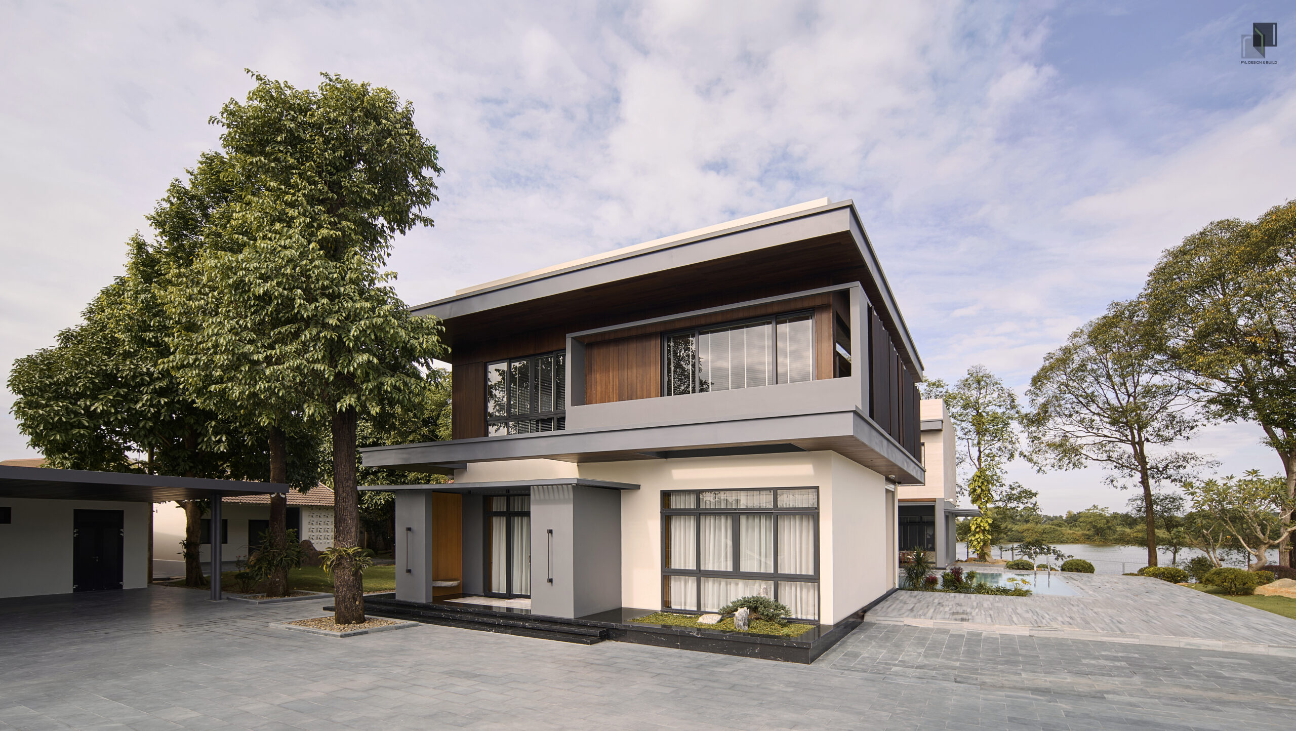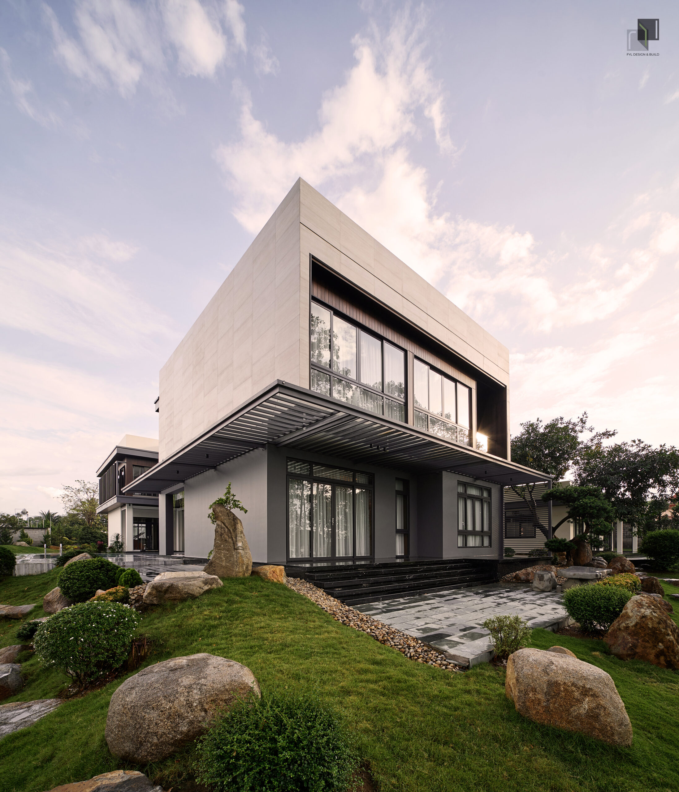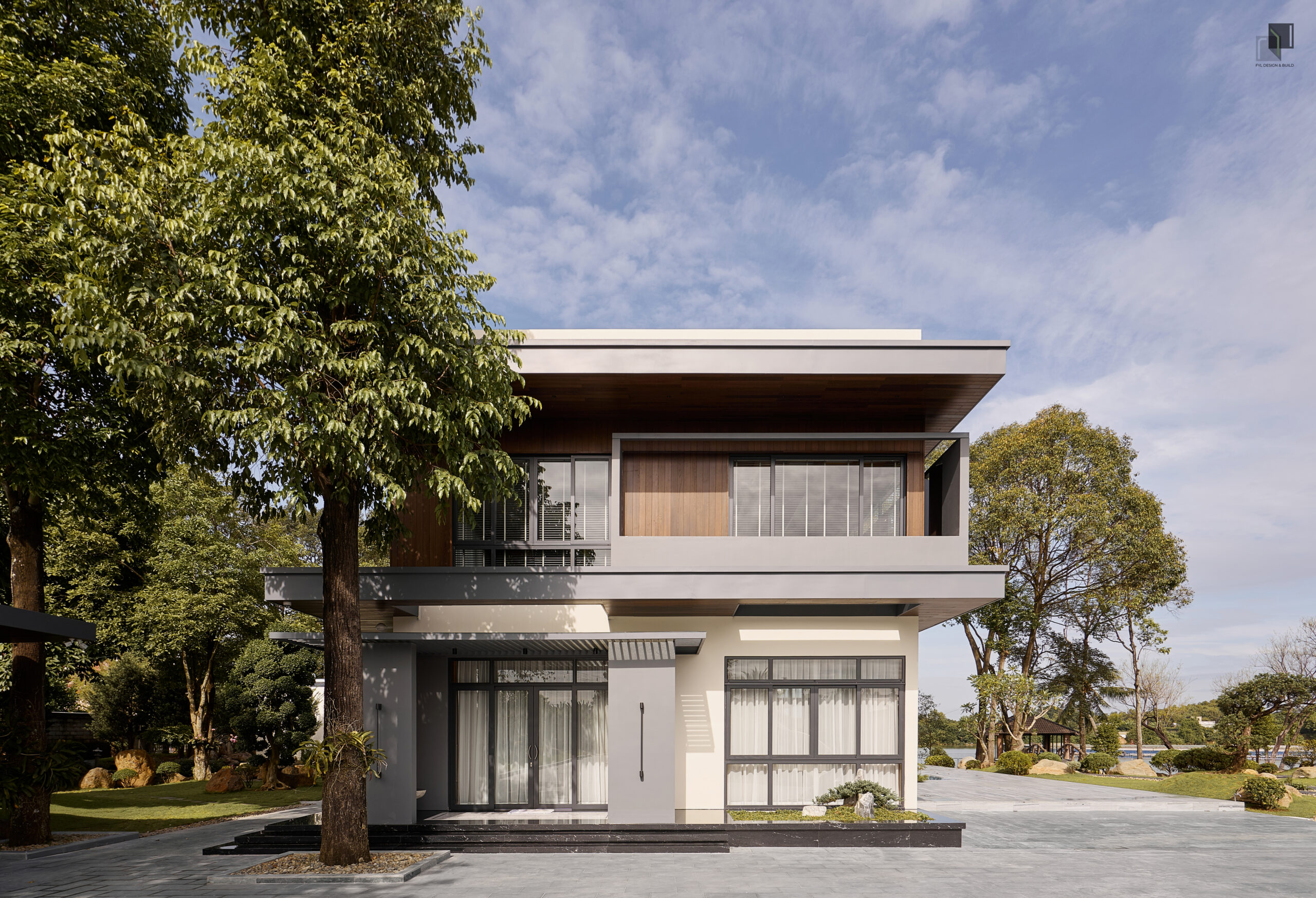 By reducing decorative details, extending the building’s structure, and using a neutral color palette combined with natural materials, FYL emphasizes the clarity and stability of the architectural volume. As a result, the project brings a sense of firmness amidst the wide natural surroundings while maintaining harmony and sophistication.