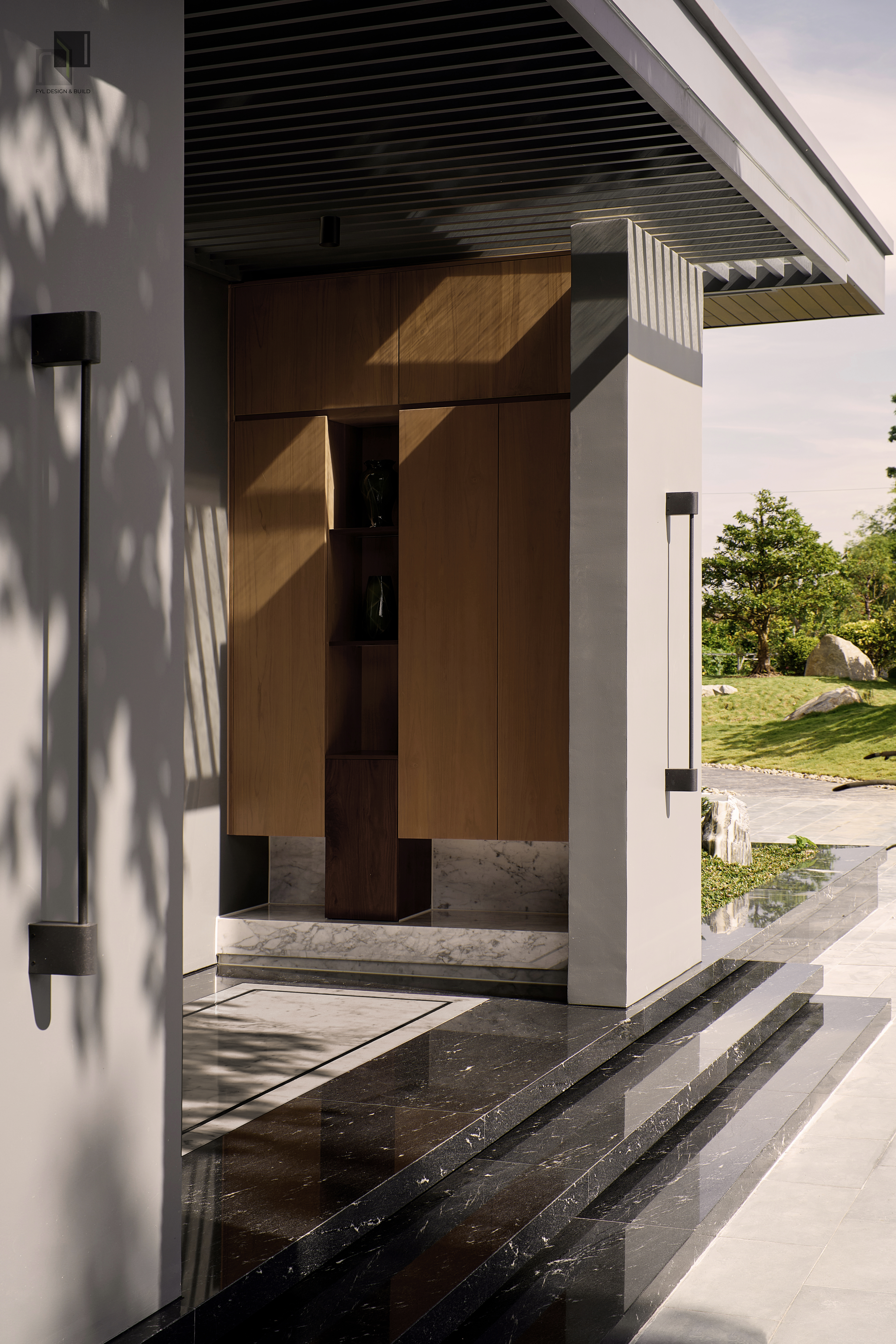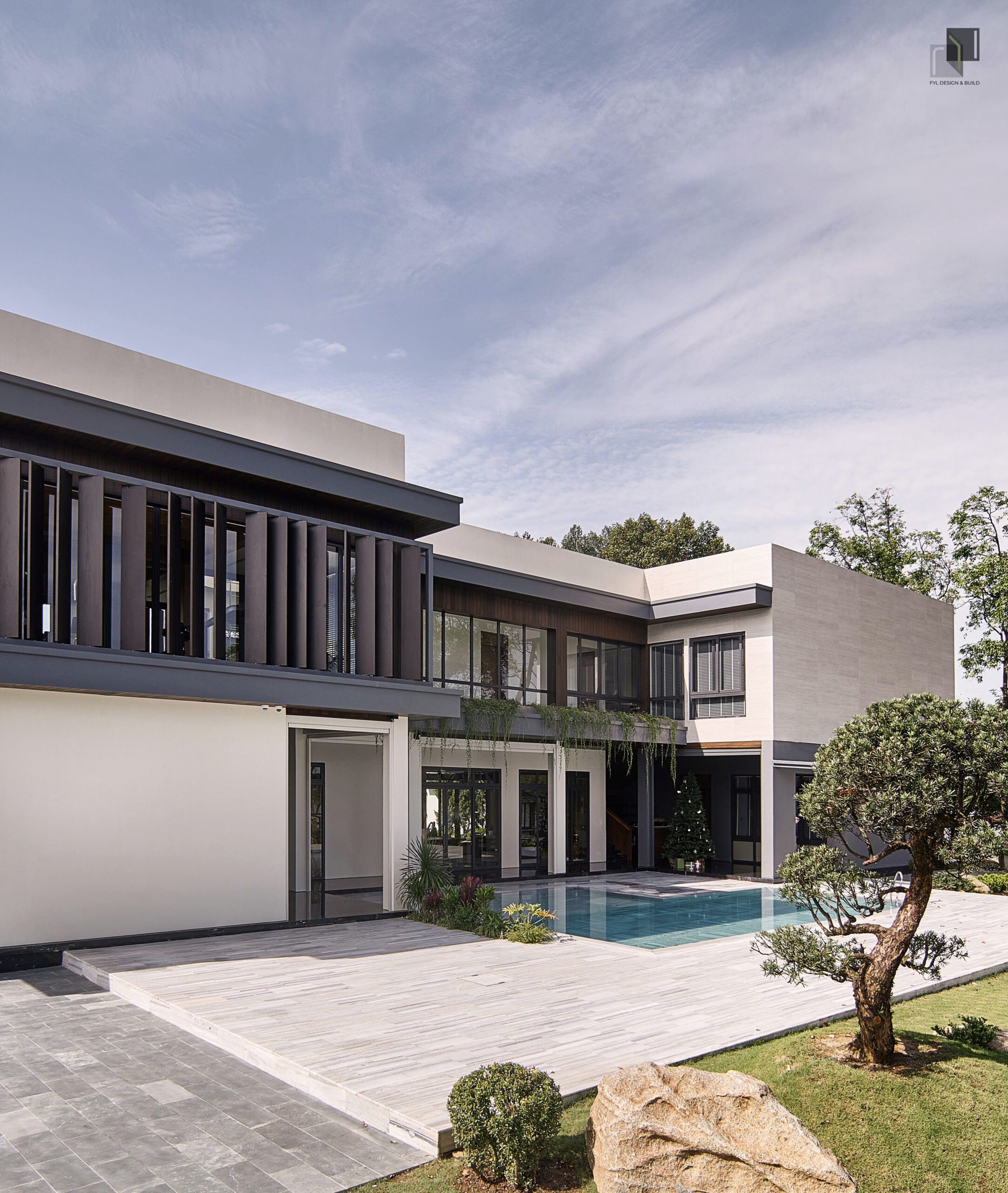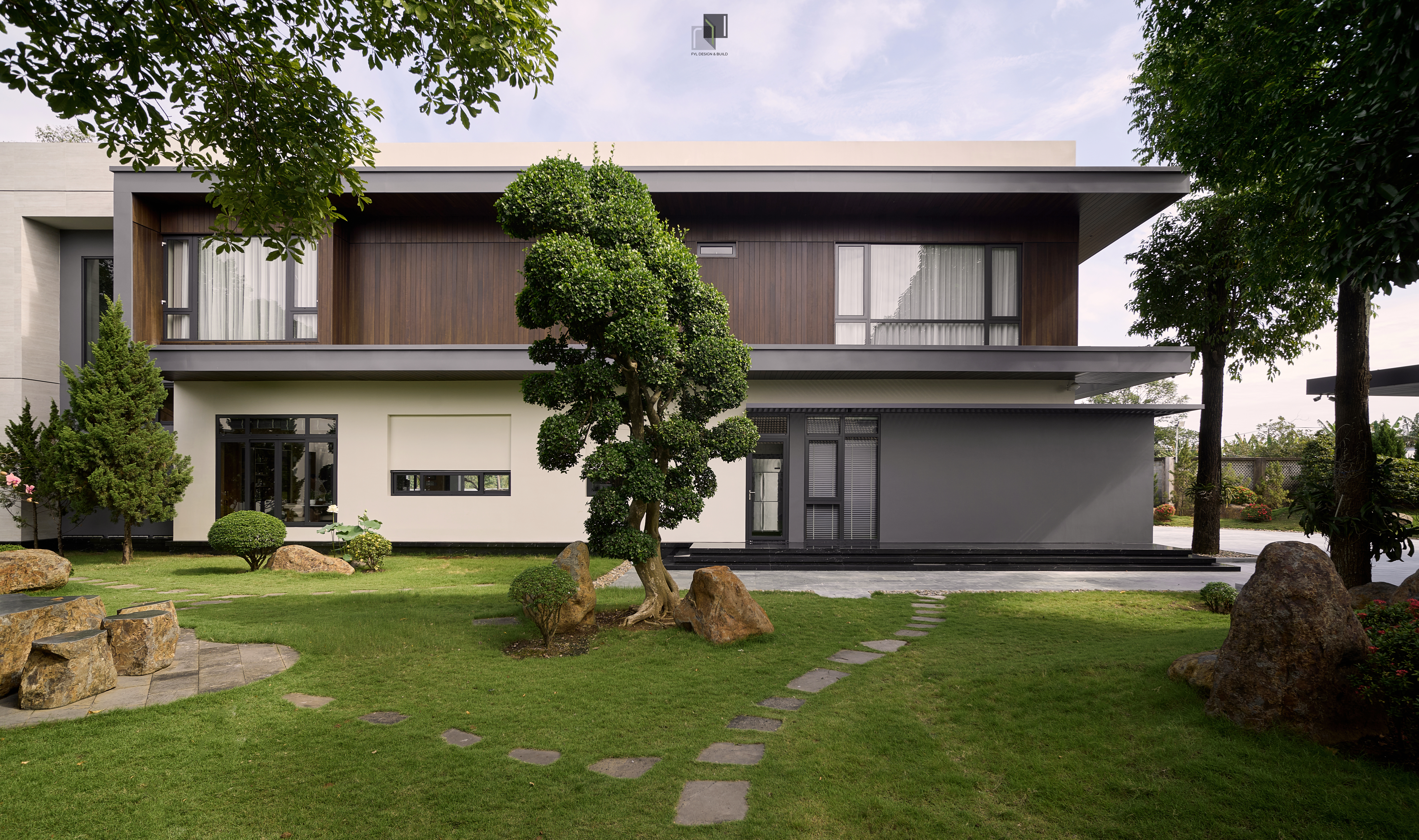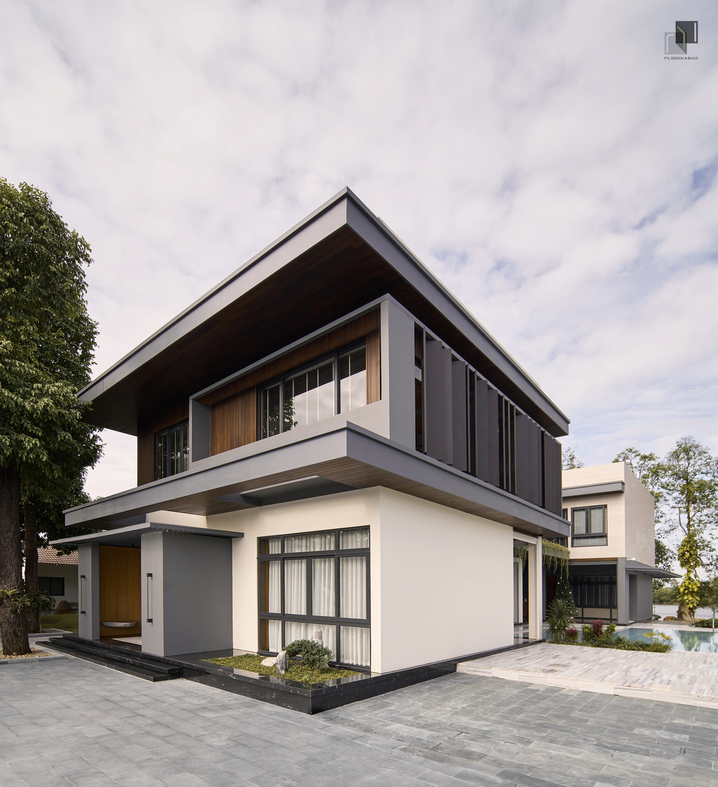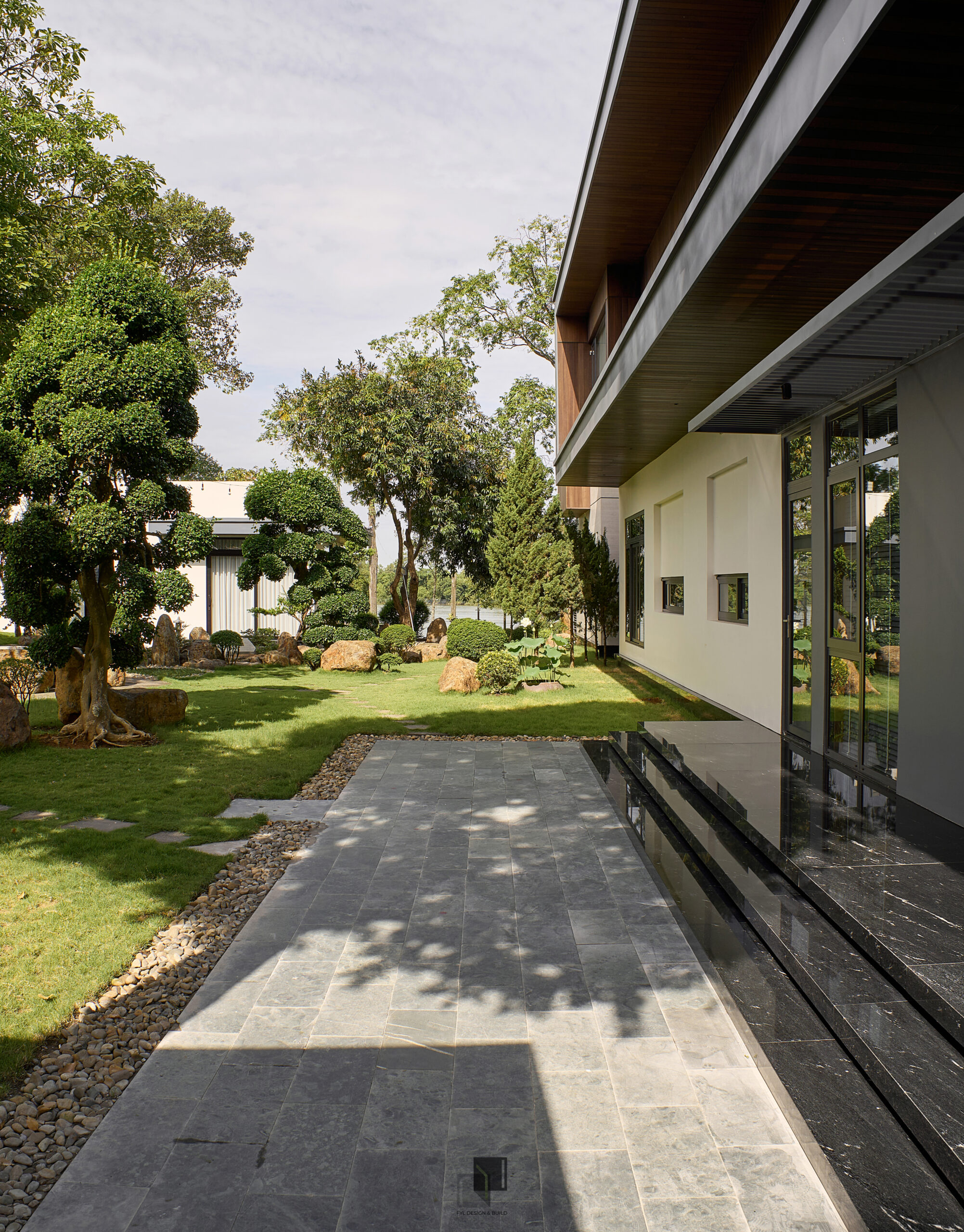 By reducing decorative details, extending the building’s structure, and using a neutral color palette combined with natural materials, FYL emphasizes the clarity and stability of the architectural volume. As a result, the project brings a sense of firmness amidst the wide natural surroundings while maintaining harmony and sophistication.
