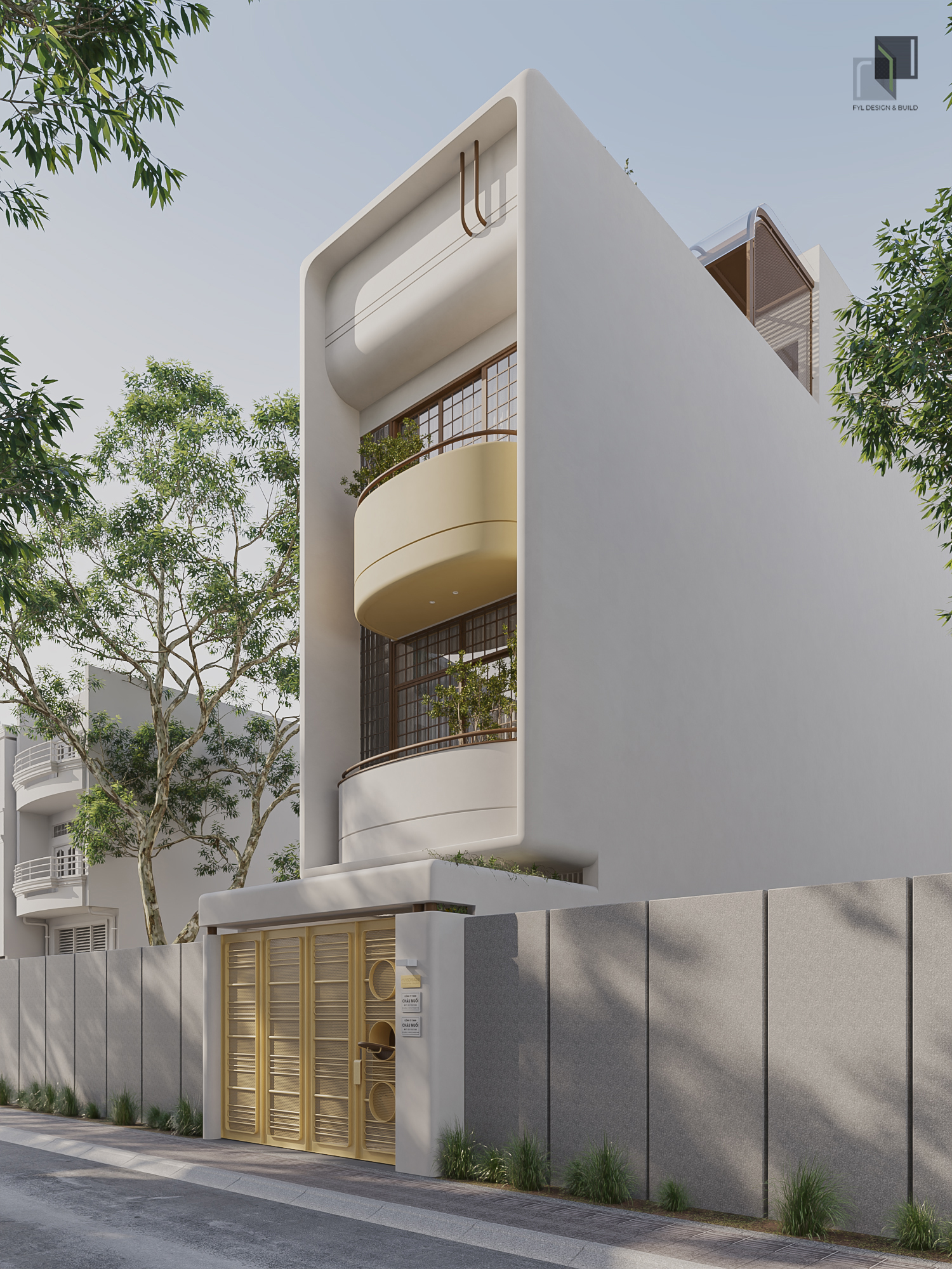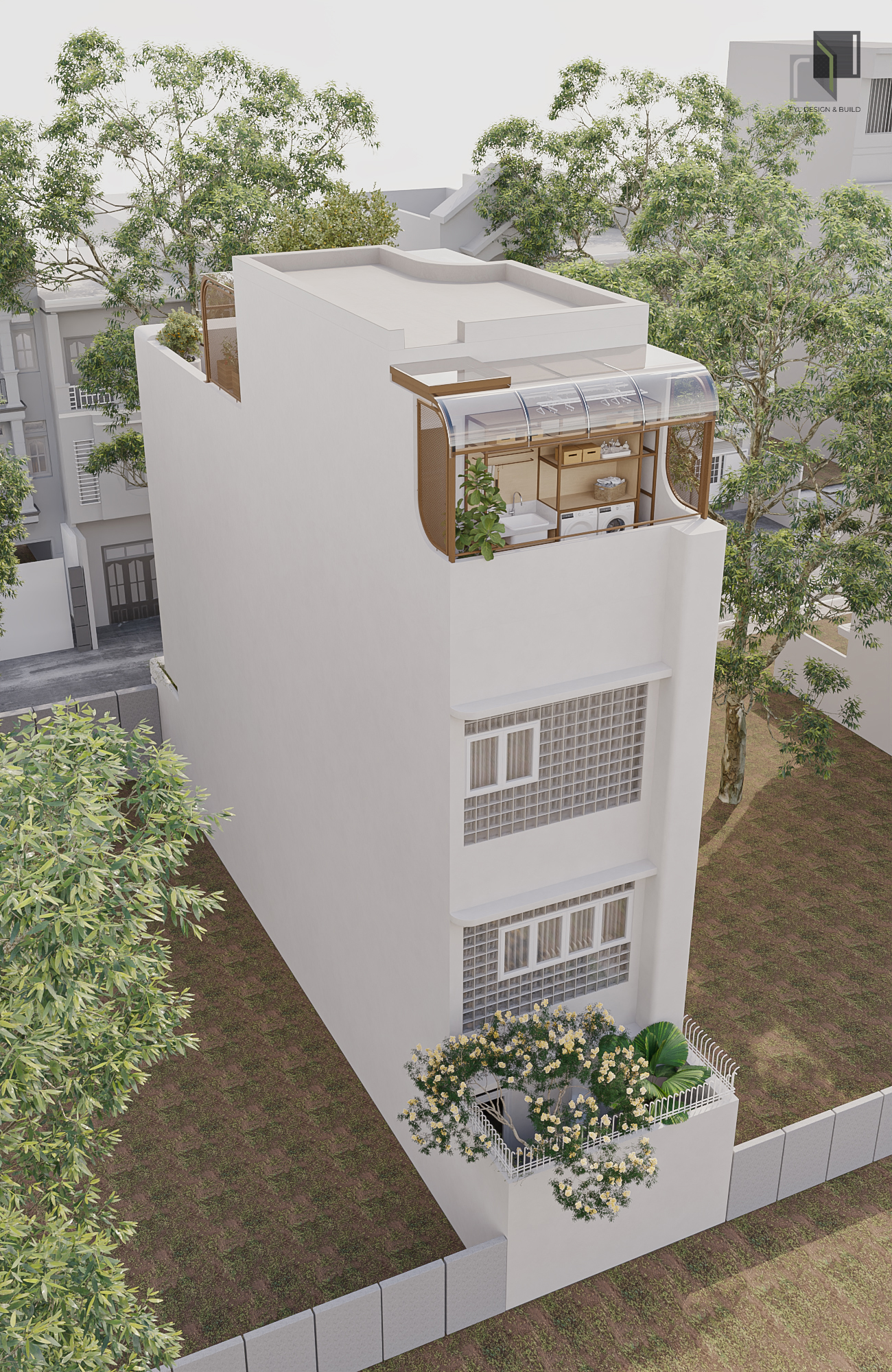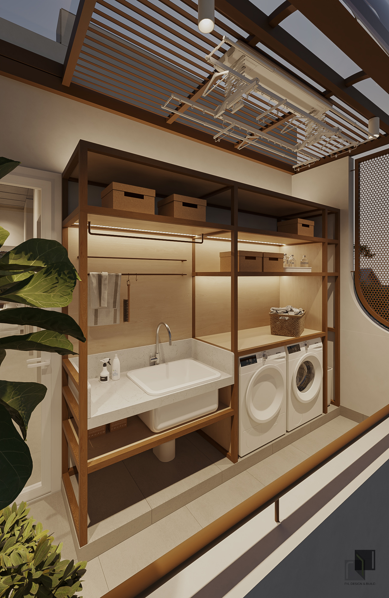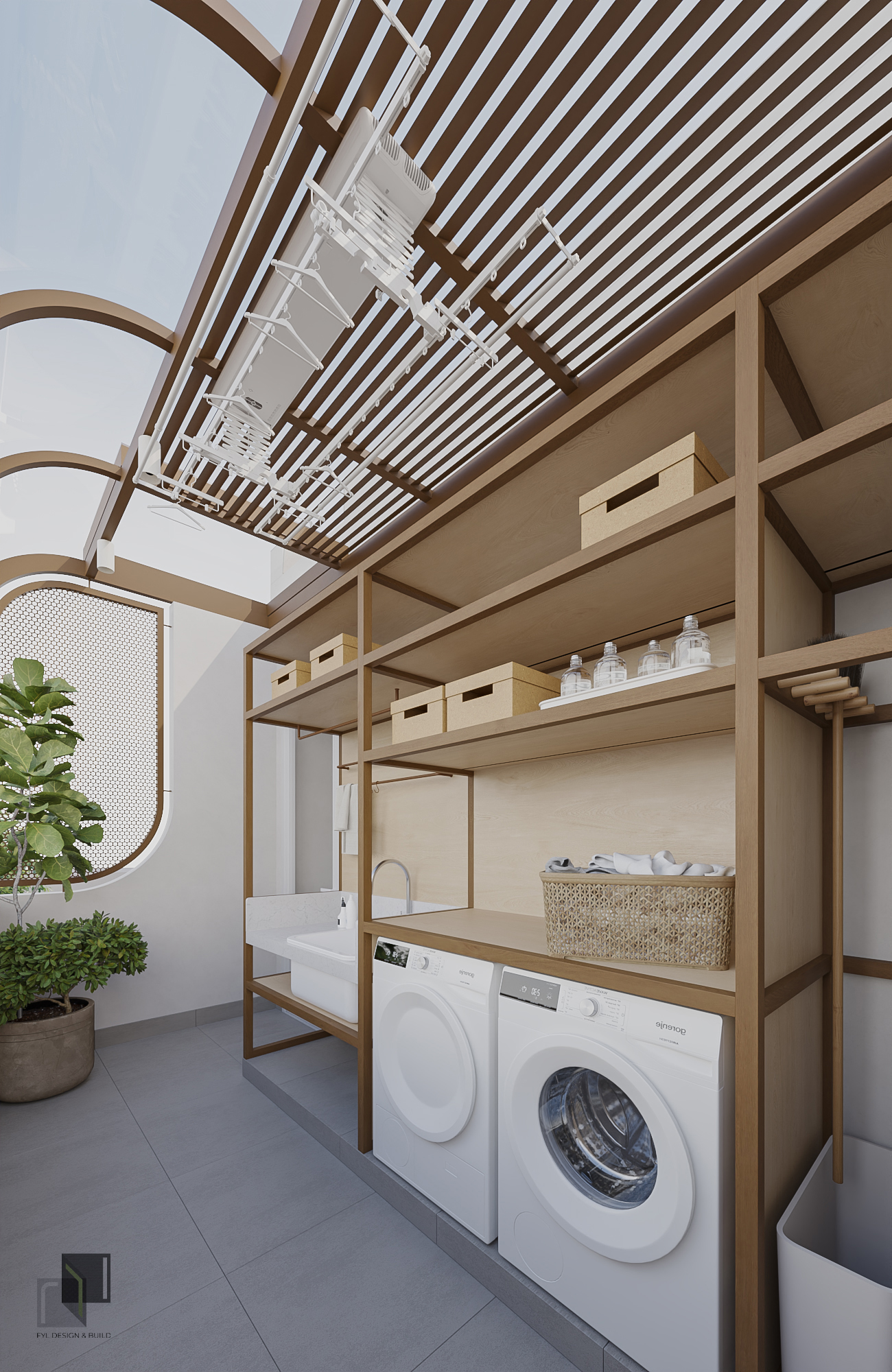 Trên diện tích đất không quá lý tưởng, từng giải pháp bố trí đến đường nét, chất liệu và ánh sáng đều được FYL tính toán kỹ lưỡng. Mục tiêu không chỉ là sự tiện nghi cho sinh hoạt hằng ngày, mà còn là một công cụ kết nối giao tiếp, giúp gắn kết các thành viên trong gia đình, đồng thời vẫn giữ được những khoảng “thở” cho riêng mỗi cá nhân. Các khoảng xanh được đan cài nhịp nhàng: góc vườn rau mẹ chăm chút mỗi ngày, sân nhỏ riêng tư cho “anh chồng” thư giãn, sân thượng cho niềm vui sum họp cả gia đình hay khoảng hiên nhỏ để mỗi người có thể lắng lại giữa kiến trúc và thiên nhiên. Sự dung hòa giữa công năng và thẩm mỹ, giữa riêng tư và kết nối là tinh thần mà FYL đặc biệt tâm đắc.