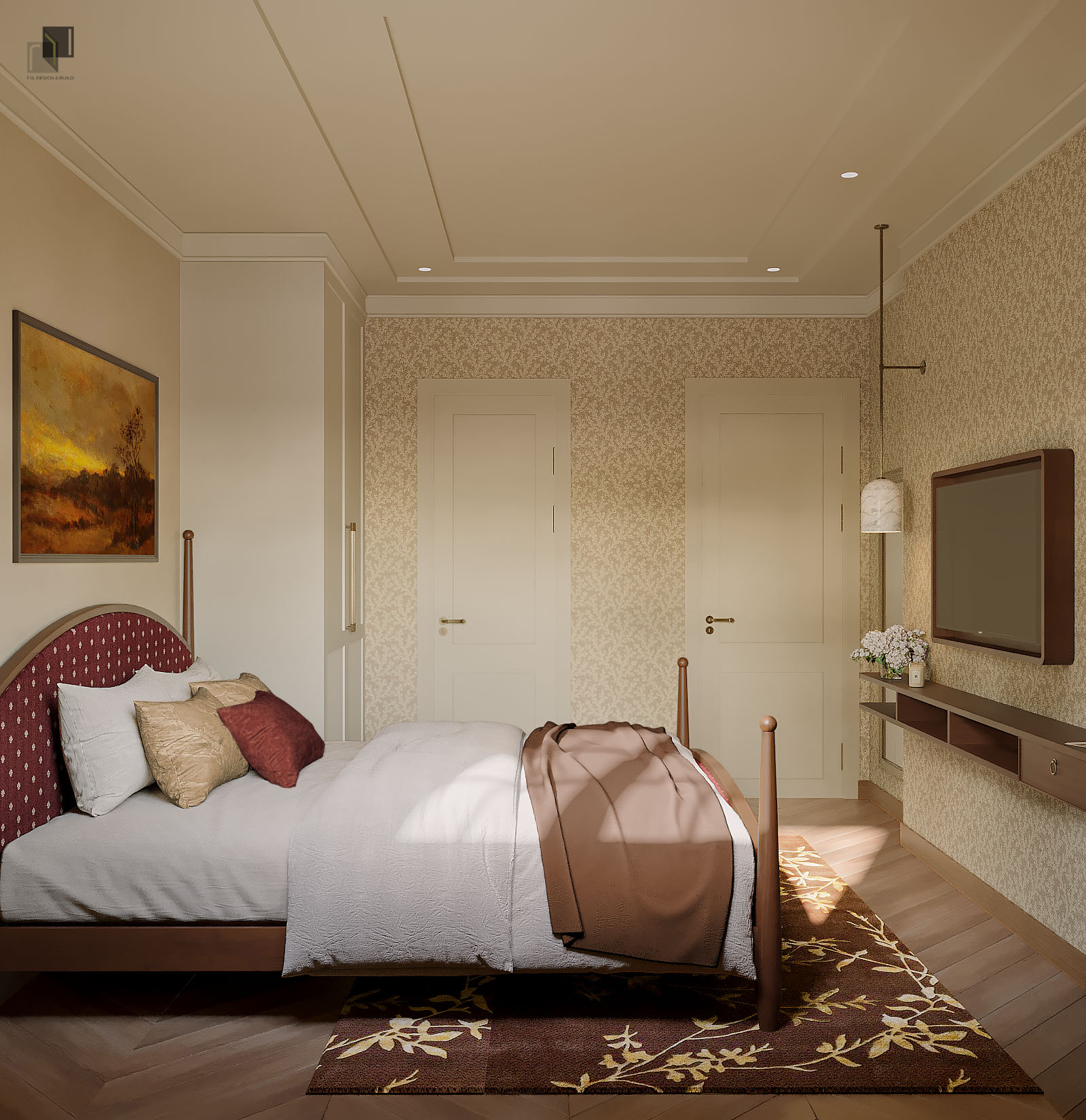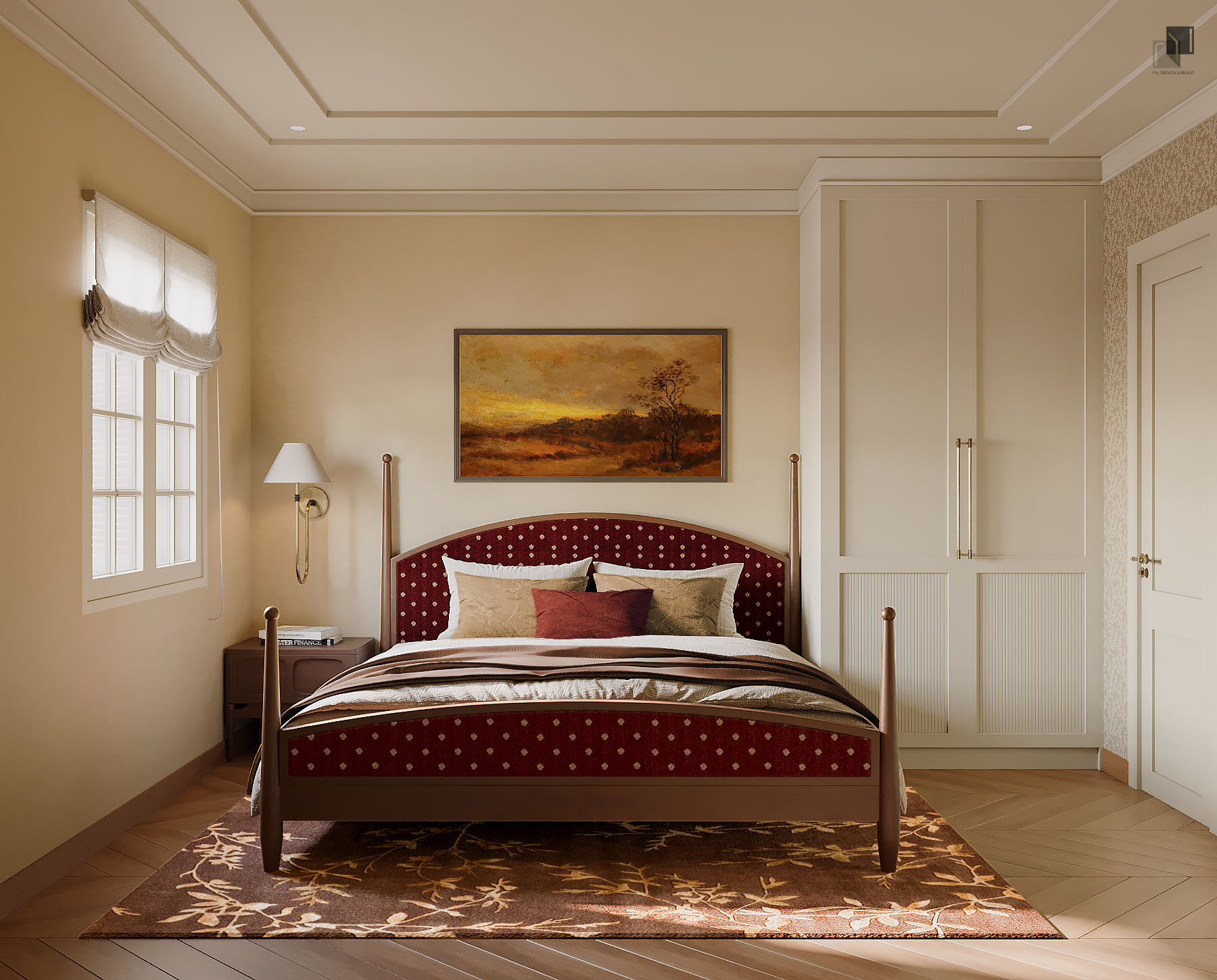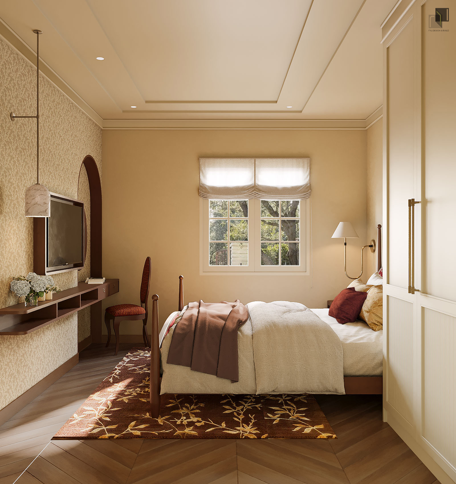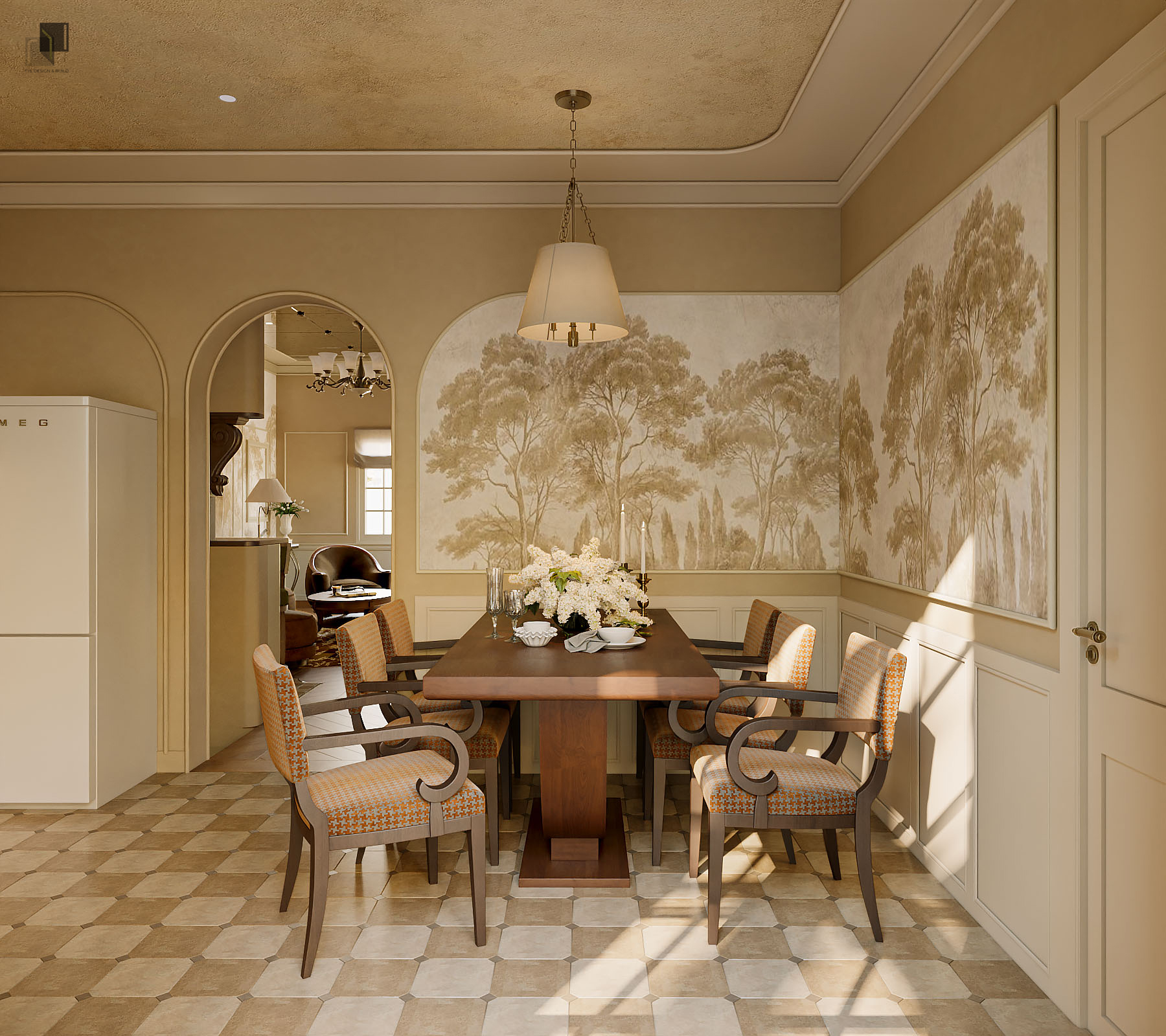 Với diện tích phân chia các phòng trong villa không quá rộng, giải pháp thiết kế tập trung vào việc giải phóng không gian bằng cách giản lược các chi tiết trang trí rườm rà và hạn chế chia cắt không gian. Các chi tiết chỉ cổ điển trong nội thất không được sử dụng dày đặc mà được chắt lọc có chủ ý. Những đường chỉ nhẹ, tinh tế vừa đủ để gợi nhắc phong cách cổ điển mà không làm không gian trở nên nặng nề.